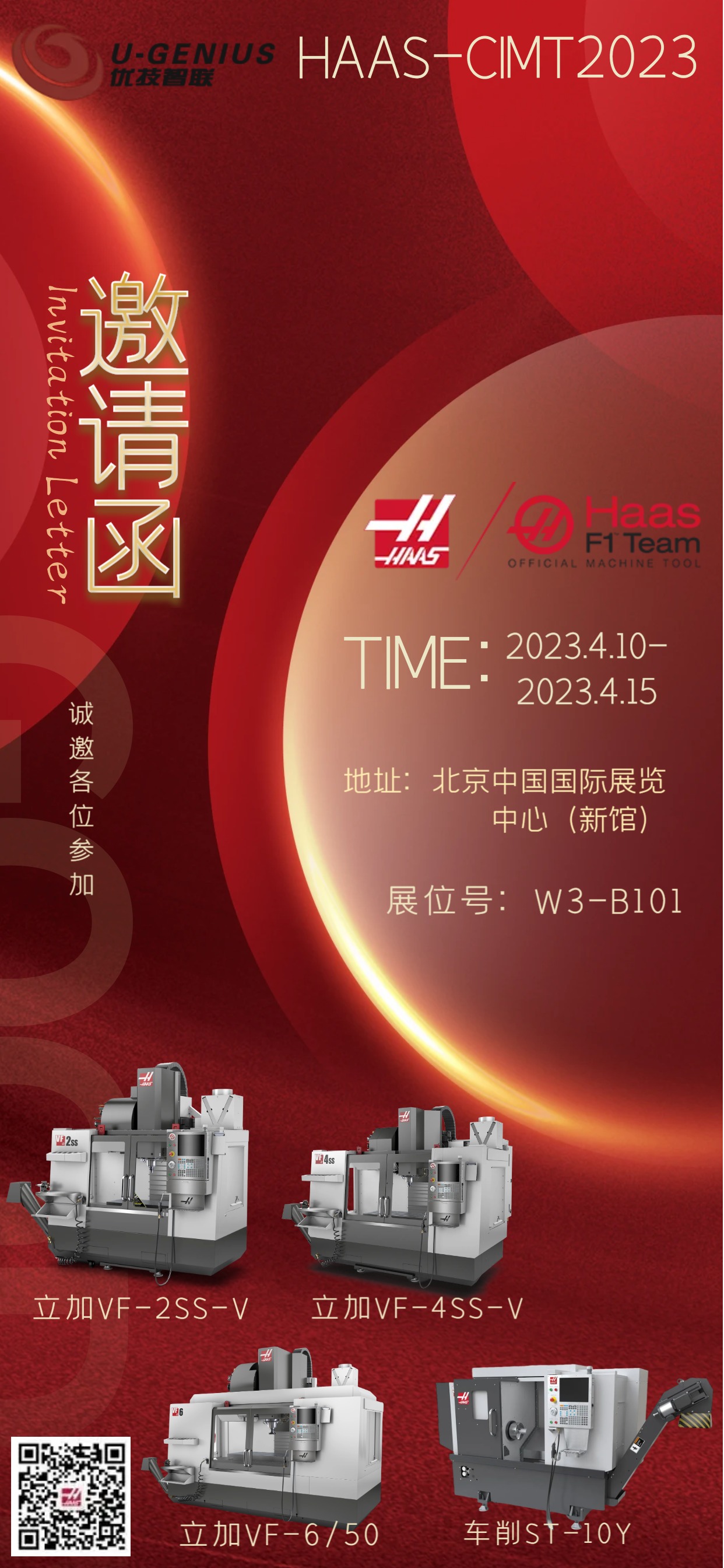 第十八屆中國國際機床展覽會(CIMT2023)將于2023年4月10至15日在北京中國國際展覽中心(順義館)舉辦,致力為全球業界及上下游產業呈現一場高水平的數字化與機床完美融合的智造盛宴。HAAS本次參展機型:立式加工中心:VF-2SS-V、VF-4SS-V、VF-6/50 車削加工中心:ST-10Y 及機器人自動化。